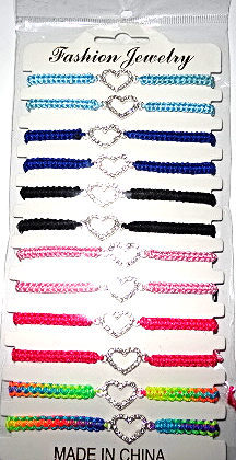 Bransoletka plecionka sznurkowa, cekinowe serce. Pakowana po 12SZT